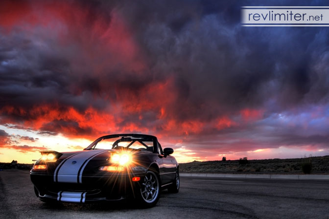 This is Sharka, my 95 NA Miata. This is not the same car in the first picture with the red clouds and tire marks.
