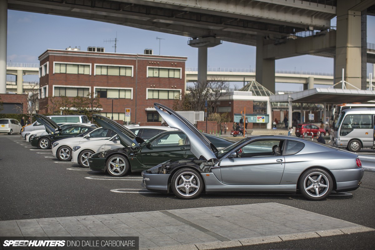 While the night meets are almost usually reserved for tuned Japanese machinery of all kinds, it’s in the mornings that the Ferrari and miscellaneous exotica guys turn up at Daikoku. I was pretty impressed at just how many cool prancing horses there were, which if you look above, also included a 599 GTO.