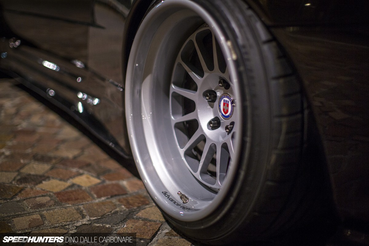 When Takashi hits the track the HREs come off and a set of spare wheels with more affordable rubber are fitted at the rear. Due to a lack of storage place they are usually kept on the back seat, safely tied down with the belts.