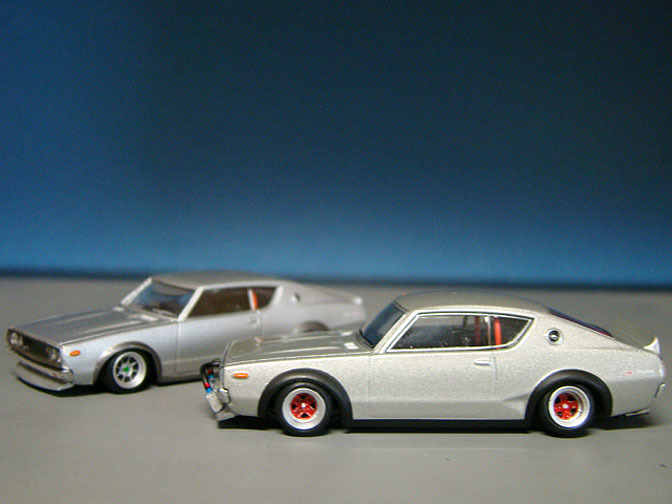 The builder has numerous Hakosuka's in various guises. This version has tilted headlights and external oil cooler for that bosozuka look.