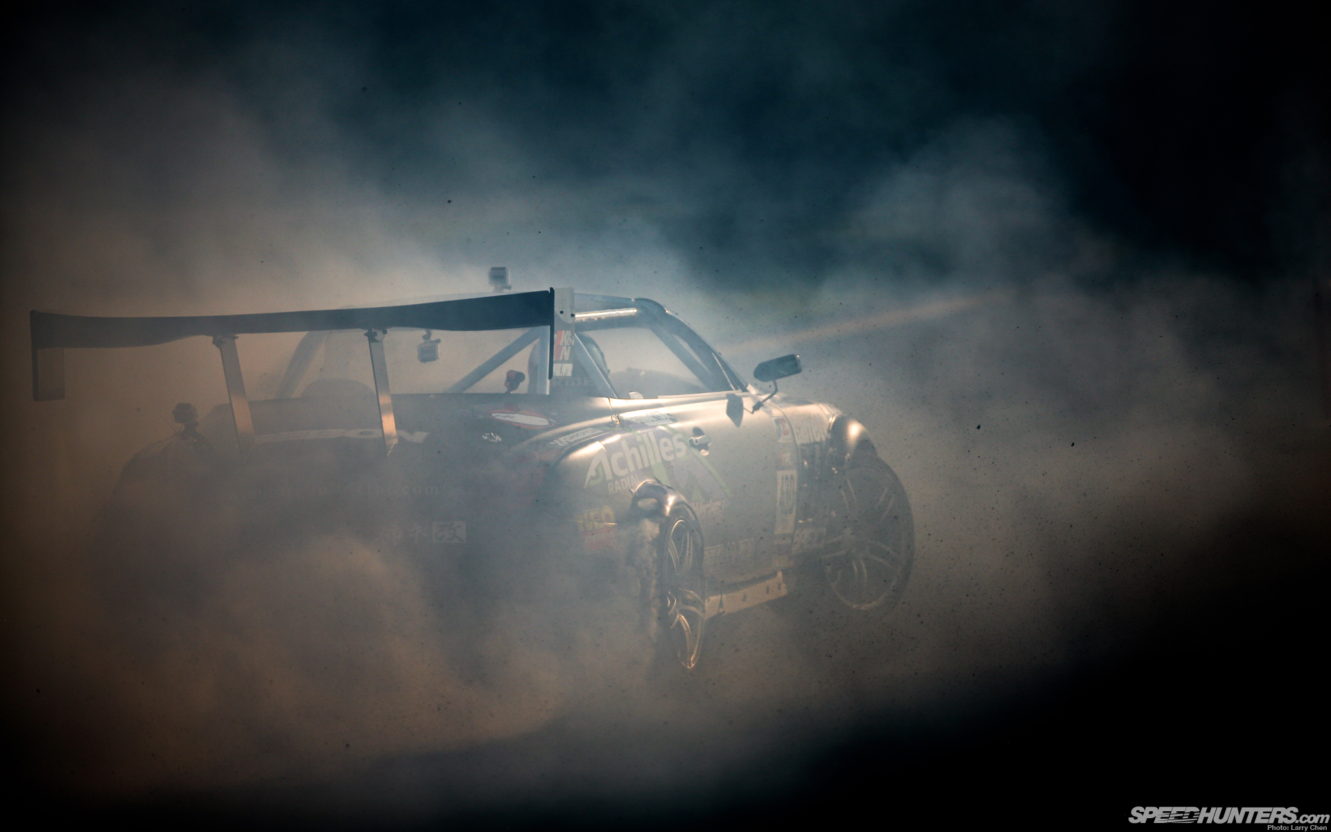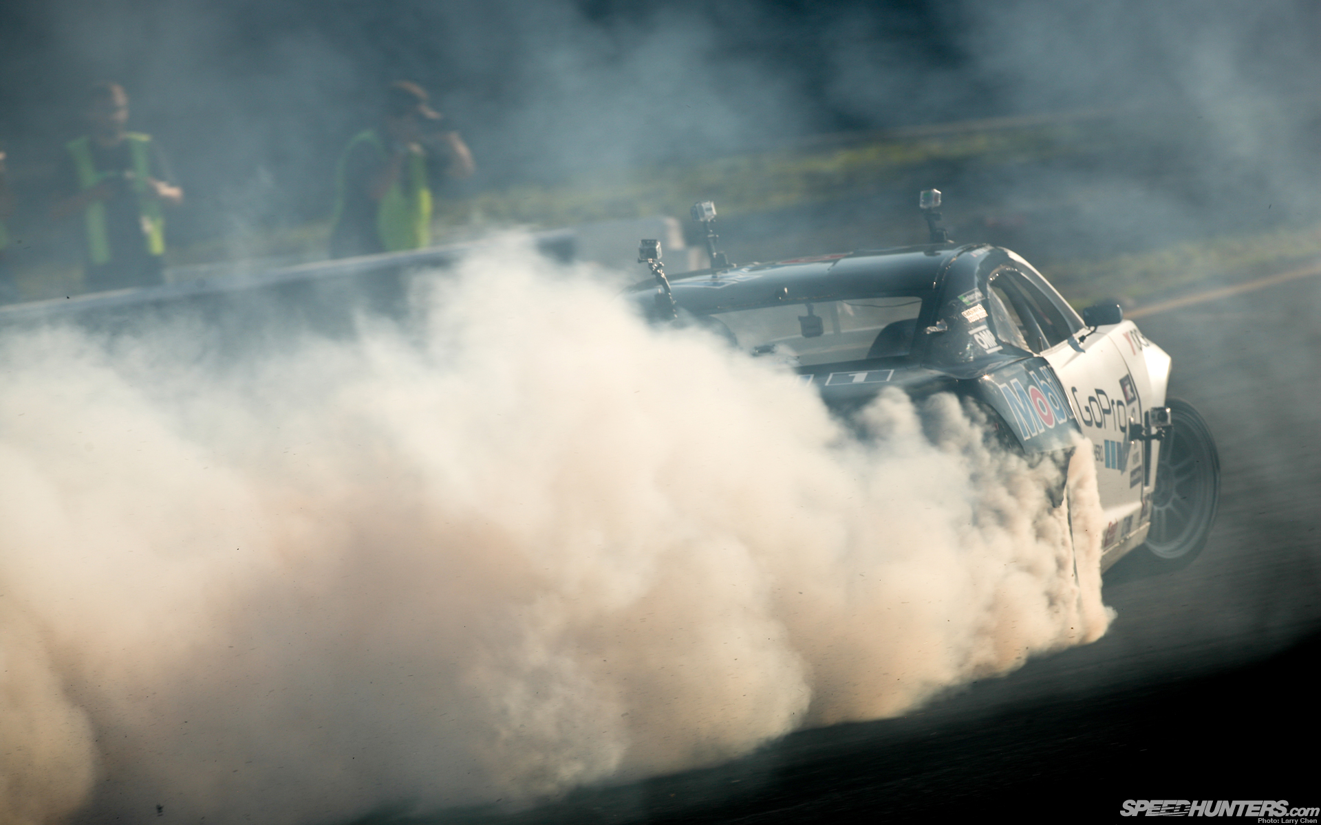 I find myself sitting in traffic all the time, which of course is pretty normal in Los Angeles. When someone slams on their brakes and lock up their tires they create a tiny puff of smoke. Most people hate the smell so they roll up their windows. As soon as it comes across my nose it instantly reminds me of drifting. I’m sure that is the face Matt Powers makes when the same thing happens to him.