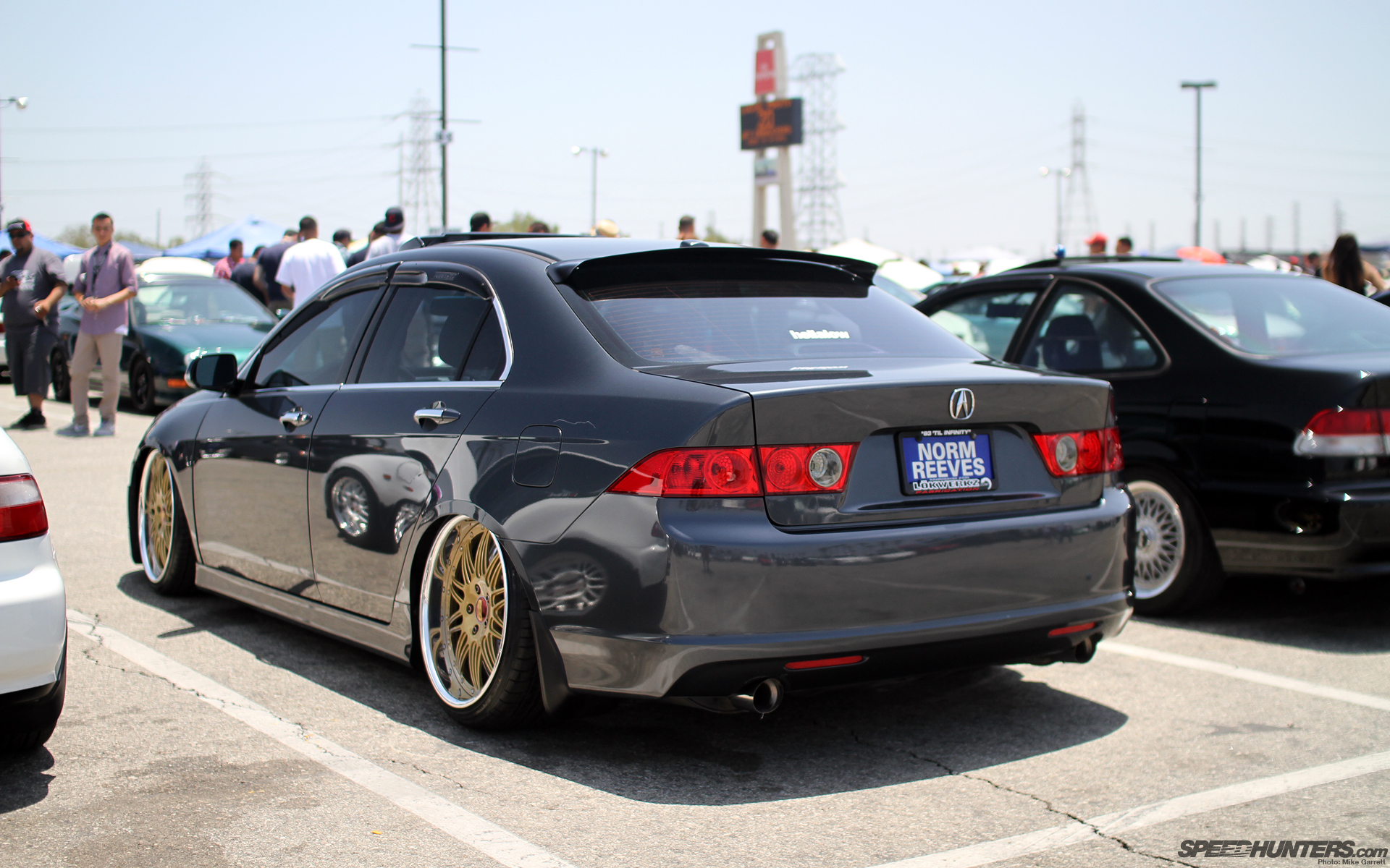 Acura TSX tucking rim. I can’t really tell if the “stance” movement is still growing or not, but there were lots of low and wide machines at Eibach.