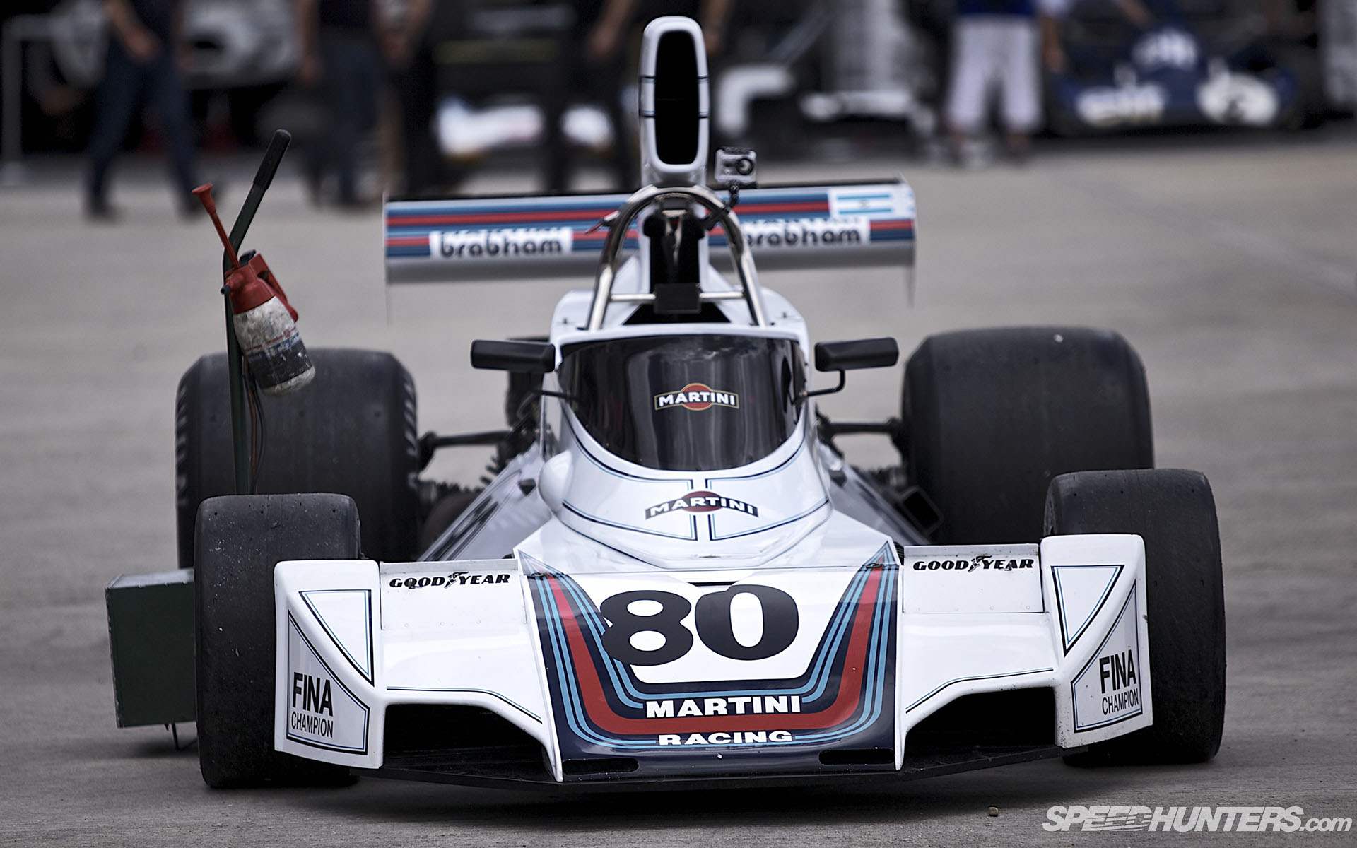 The cars themselves are all resplendent in their period liveries, however non-PC they might be, and usually proudly display the names of their original drivers on the sides: Watson, Andretti, Alboretto, Jarier, Patrese, Stewart…