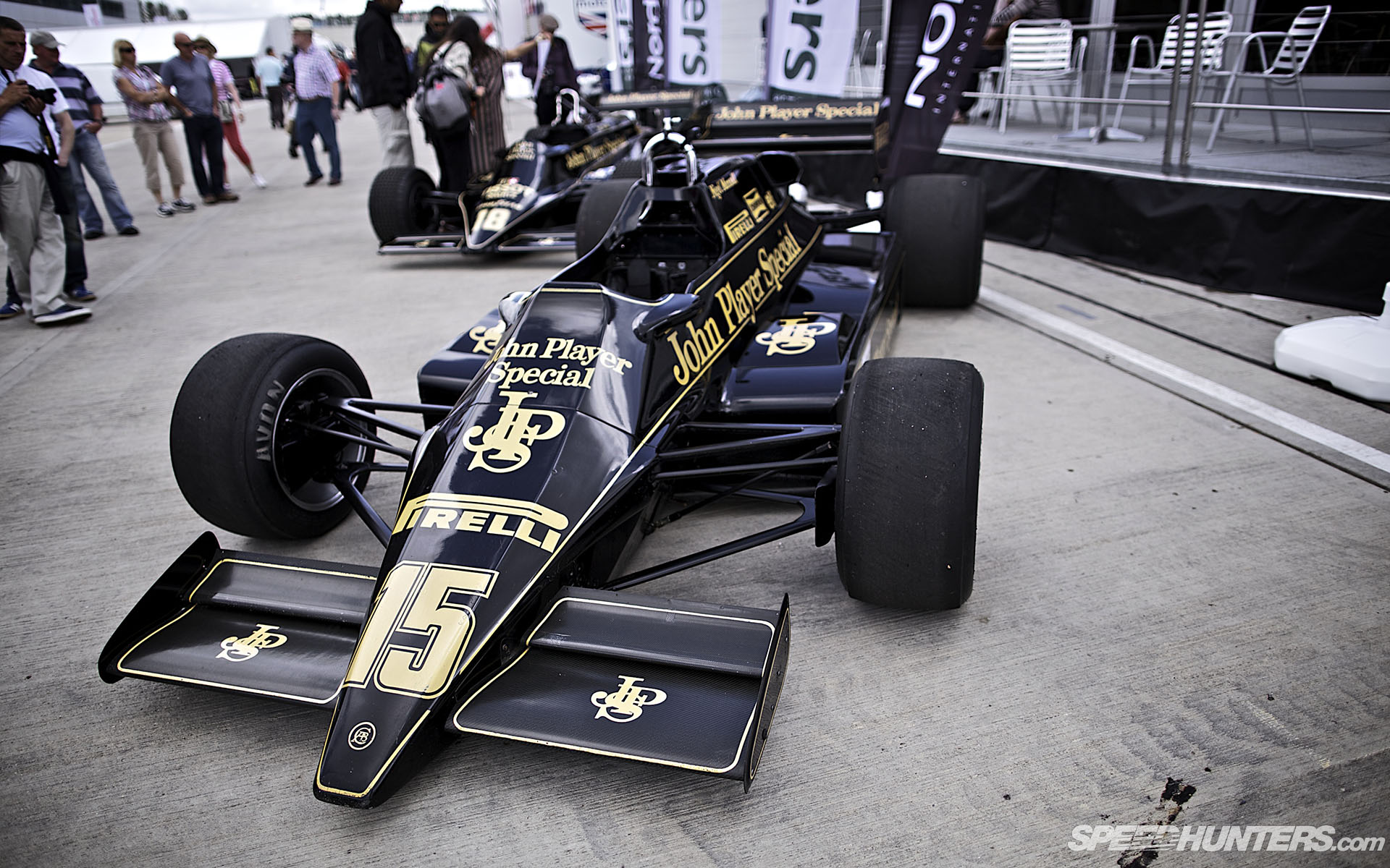 Several John Player Special-liveried Lotus were also on display but not competing, like these two Mansell cars: a 91 and 92.
