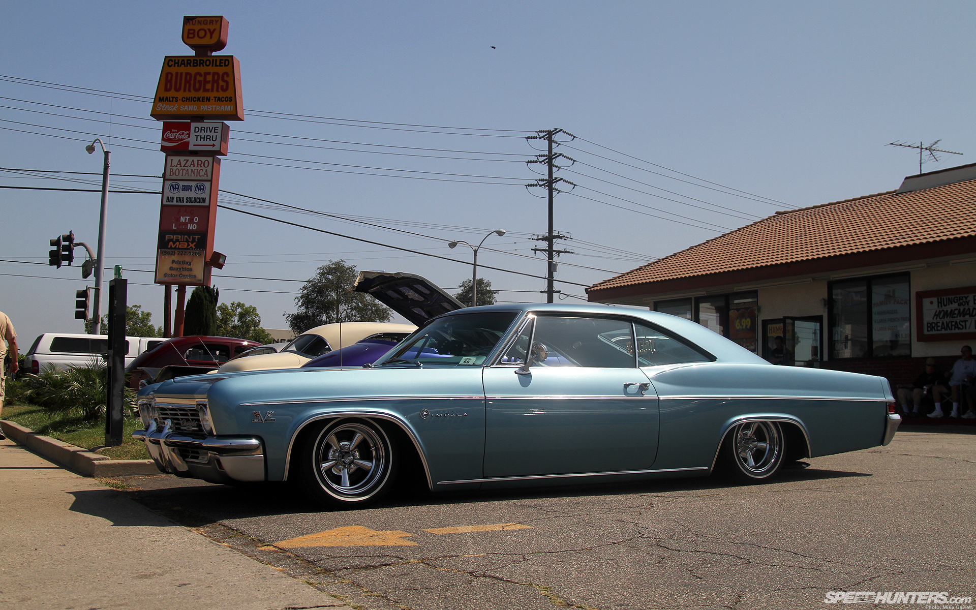 While the 1964 model might be the most famous of the Impalas, I’m quite partial to the ’65 and ’66 models myself. This example was looking just right dropped over a set of Astro Supremes with skinny white walls. Oh how I’d love to have one sitting in my garage some day.