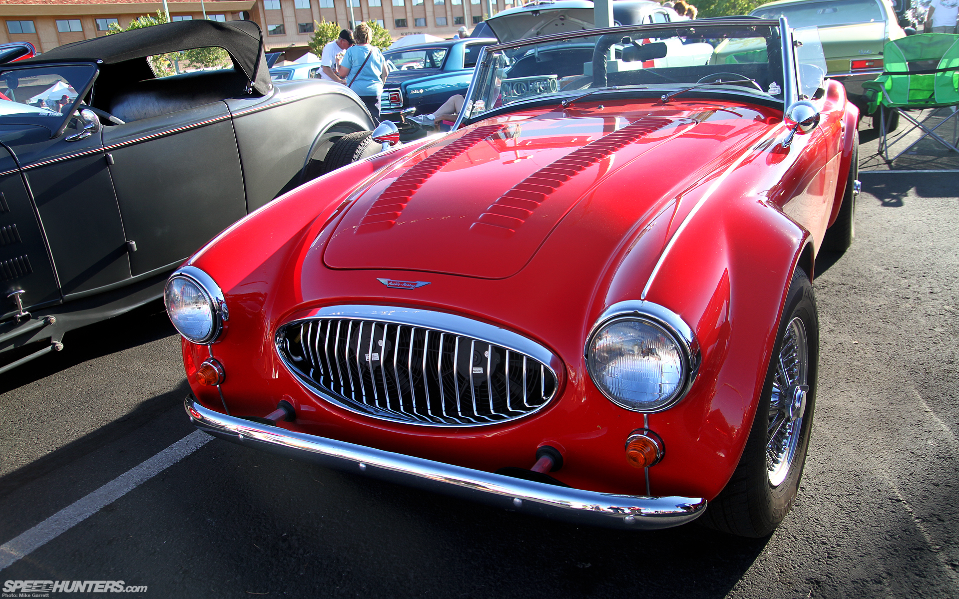 Although heavily outnumbered by American models, vintage European cars like this Austin Healey add a nice variety to things.