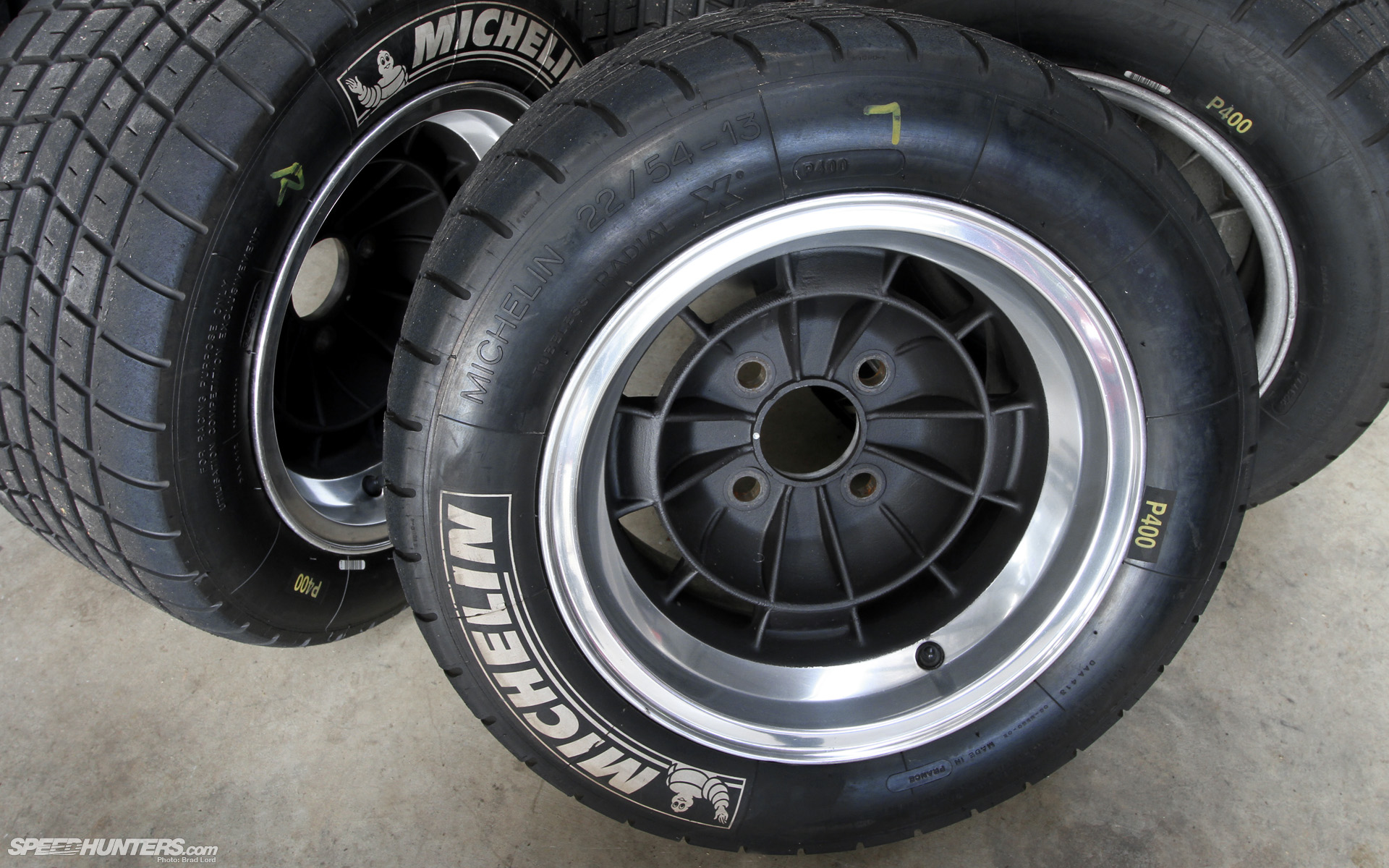 Not only are these wheels quite rare, but they’re proper AE86 TRD N2-spec items to boot. This particular set was tracked down in Indonesia and is currently fitted with wet tires for use on the N2 car on soggy race days.