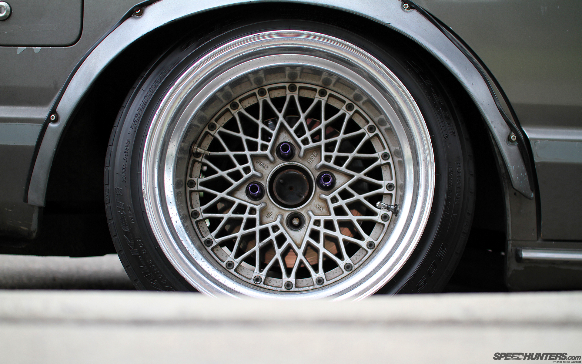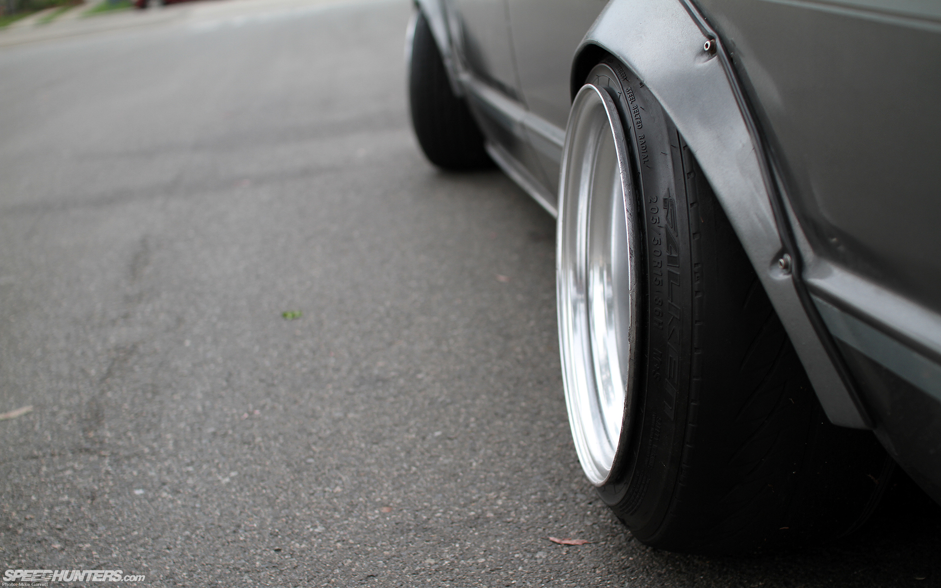 When I say this car was built on a budget, that doesn’t mean that Lloyd hopped on Ebay and ordered up the first set of cheap, low offset wheels he could find. No, he waited patiently and saved up his money until he scored a set of SSR Formula Mesh wheels that have to be the absolute best choice for this particular car. The exact sizes are 15×10 -40 up front and 15×11 -25 in the rear, with 205/50/15 tires all around.