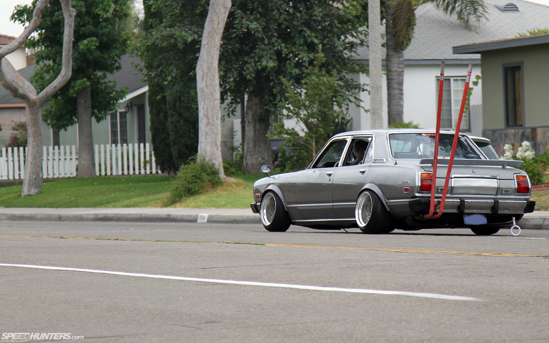 The fender flares were originally designed for a Toyota Starlet while the trunk spoiler was made for a Hakosuka Skyline. Again, a lack of aftermarket parts is nothing that can’t be combated with a little creativity and ingenuity.