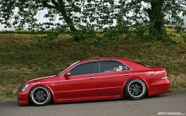 The owner of the car chose a factory Nissan Cube candy red color, a hue that would have made VIP guys back in the early nineties cringe, but something that now is very much accepted.