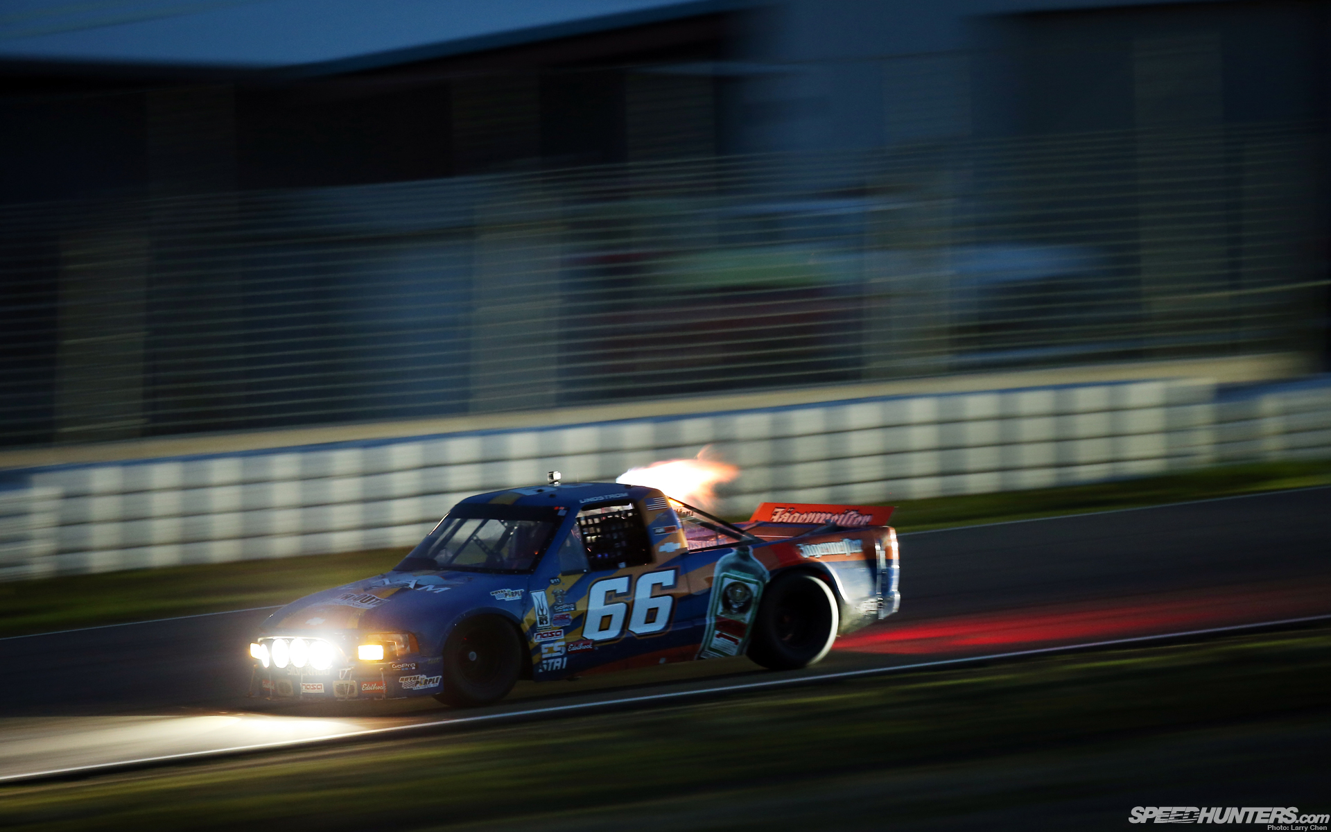 The oddball out was this crazy flame-shooting Chevy Silverado run by Lynam Racing which even led the race for over seven hours during the night. The running joke was that it had rocket boosters.