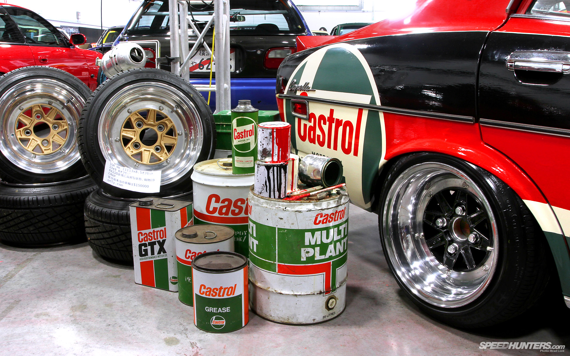 I love the detail, right down to the hand-painted black-over-red scheme and retro Castrol livery – especially with its off-white hue. Of course, a super-low ride height and fat SSR MkIII rims have helped the cause as well.