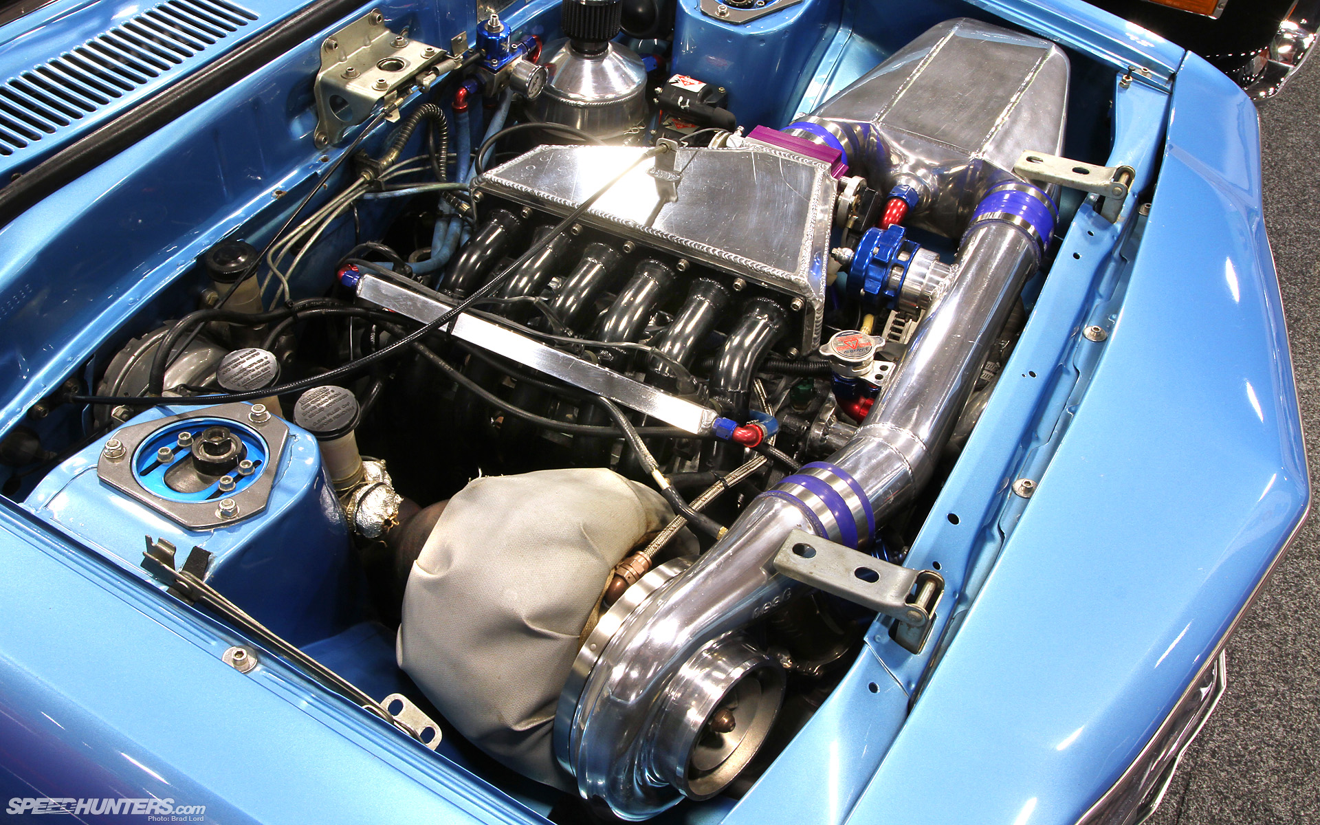 Although its body styling is subtle, the same can’t be said for the engine room, where you’ll find an RB30 with a Garrett T72 hanging off the side. The blacked-out intercooler up front is a nice sleeper-style touch.