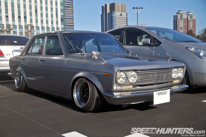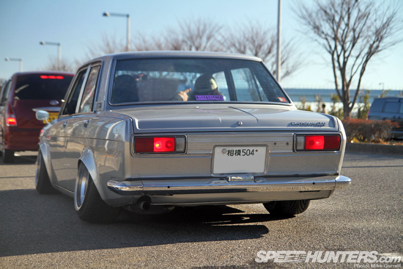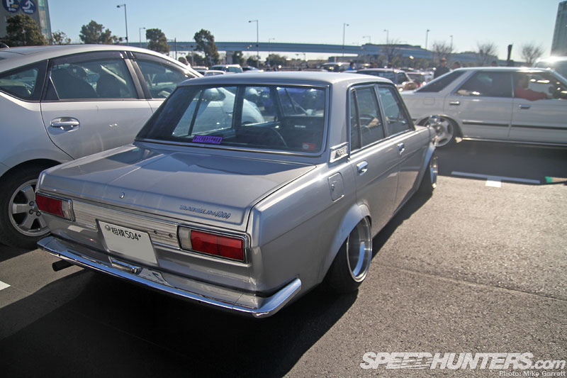 Compared to many of the cars that gathered in Odaiba, this one was quite mild. But sometimes mild is best, and what this car lacked in aggressive aero parts and coloring it made up for with an unbelievably aggressive stance. For starters, it was dropped low. About as low I’ve ever seen a 510 chassis go, with its underside nearly touching the ground.
