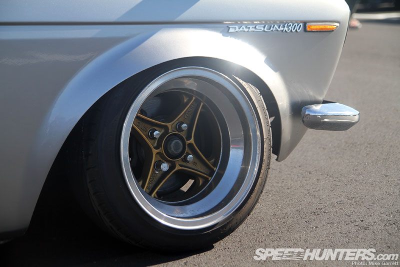 Besides the unreal stance, the rest of the car was nearly stock. Check the out the tiny little muffler for example – very restrained. The interior of the car was equally simple with low back bucket seats and a Datsun option steering wheel.