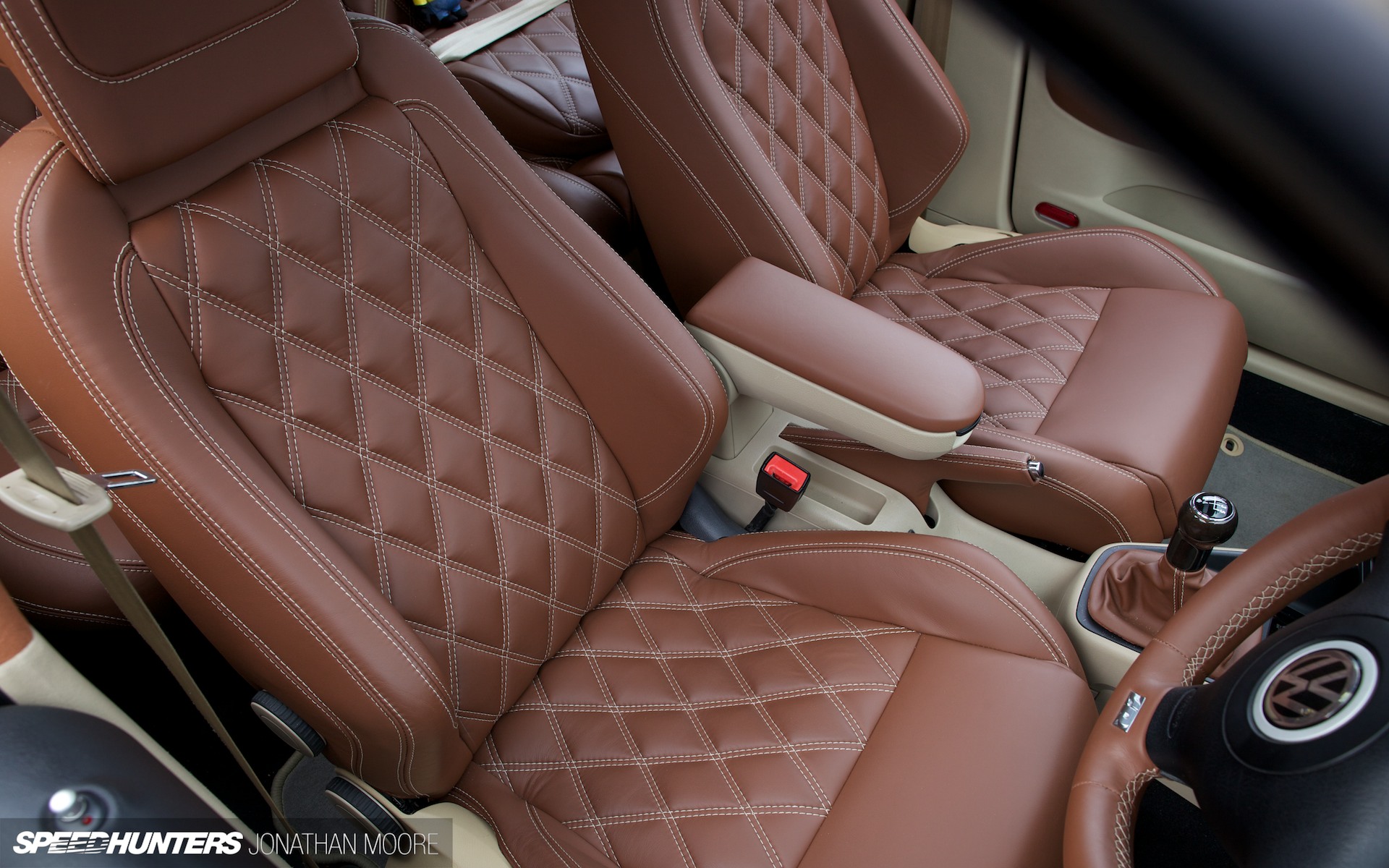 They say it’s what’s on the inside that counts. It’s an approach that the VAG scene has certainly taken to heart. In a world where every detail is important, and where external bodywork is kept clean and simple, sometimes it’s the interiors that really show a bit of flamboyancy. As we took a stroll round the Players Show, we stuck our heads into a few cars to check out whether the saying had any truth it in or not. We’ll start off in the world of leather. First up is this MK II Golf.