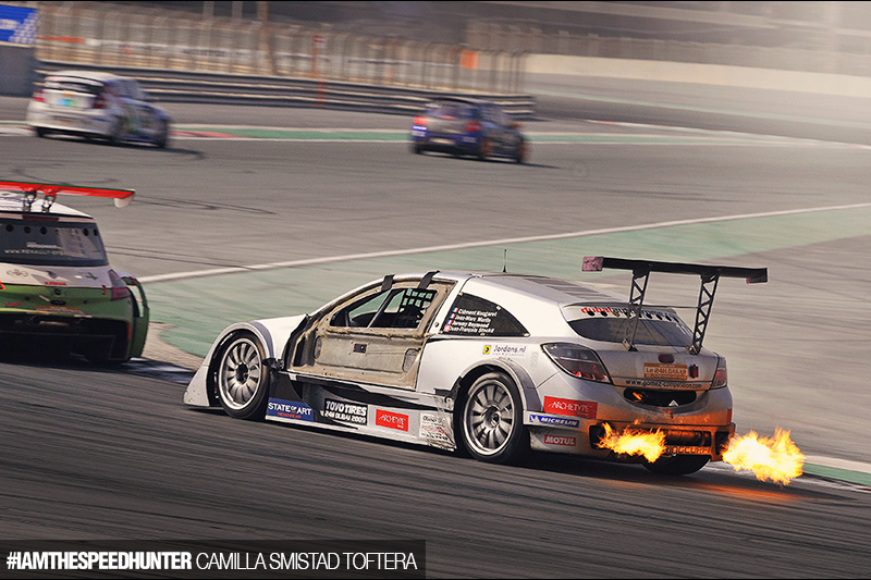 This picture is taken at the 24h race in Dubai. As you see the cars are getting very tired. Some are crashed, some have lost power while others just hope to reach the finish. This is shoot at one of the very last laps in the race. It tells a lot about how much a car and a turbo must endure within 24 hours. :)