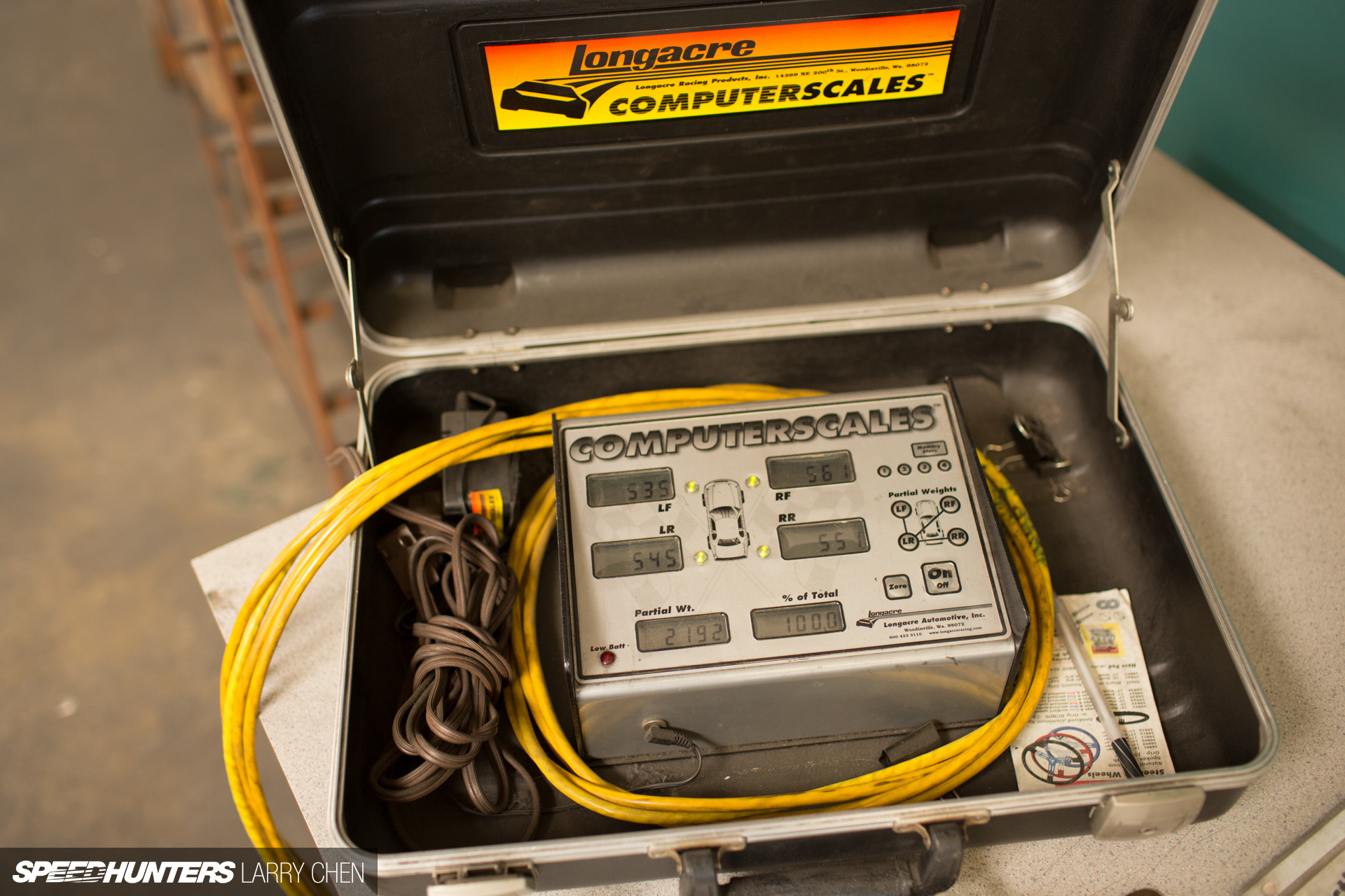 I learned a hard lesson that night: you can win by an inch or a mile – winning is winning. Then it was finally time to do the corner weight measurements – the front of the car has 49.2% of the weight and the rear has 50.8% which is pretty close to 50/50 for such a modified car. These measurements were taken with me inside of the car. In fact, the side to side ratio, also with me in it was also 49.2% passenger side and 50.8% driver side.