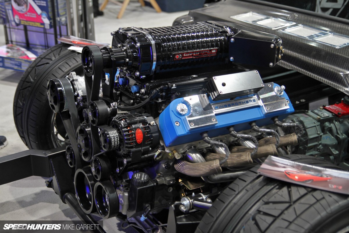 Under the hood sits a supercharged LS9 crate motor straight out of the GM Performance Parts catalog, mounted to the proven T56 six-speed transmission.