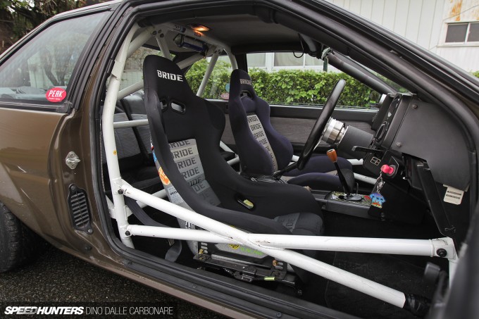 In true grassroots drift style, the driver gets the nice Bride bucket, while the passenger has to do with a slightly tatty reclinable model; unmatched in color too for that extra JDM feel!