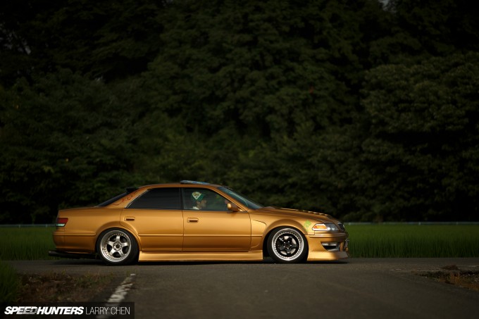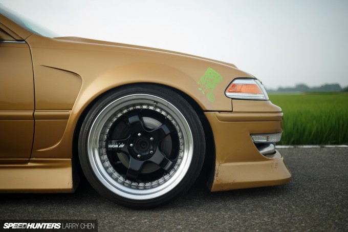 Of course you’re going to have a hard time getting those sizes to fit on a stock-bodied JZX100, but the exterior of this Mark II has been modified extensively.