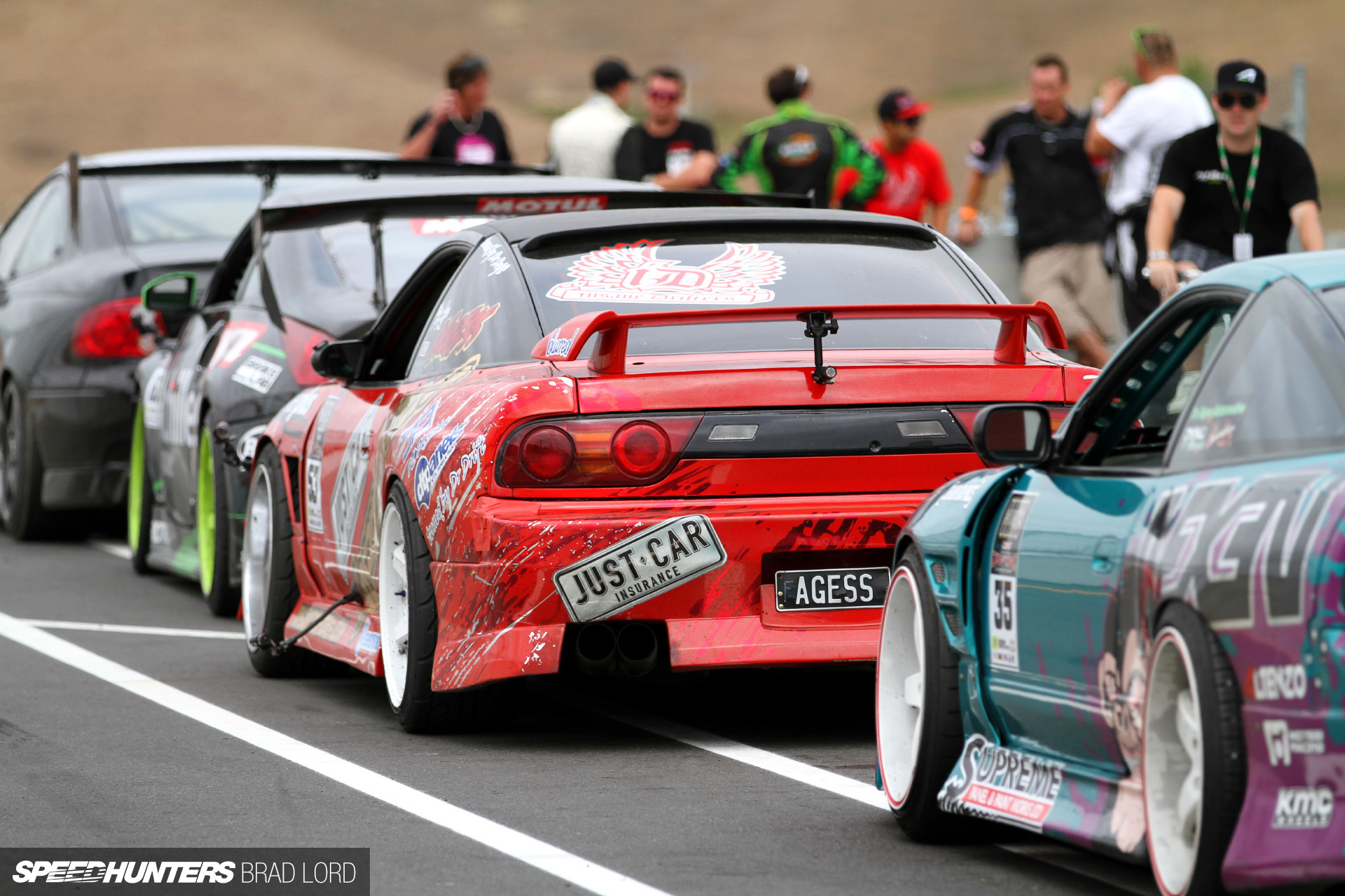 The usual collection of S-chassis and rotary-based drift cars mixed it up with some lesser-seen choices on track, such as the Holden Commodore piloted by season winner ‘Fanga’ Dan Woolhouse and even a Subaru Impreza WRX STI hatchback – still running its AWD!