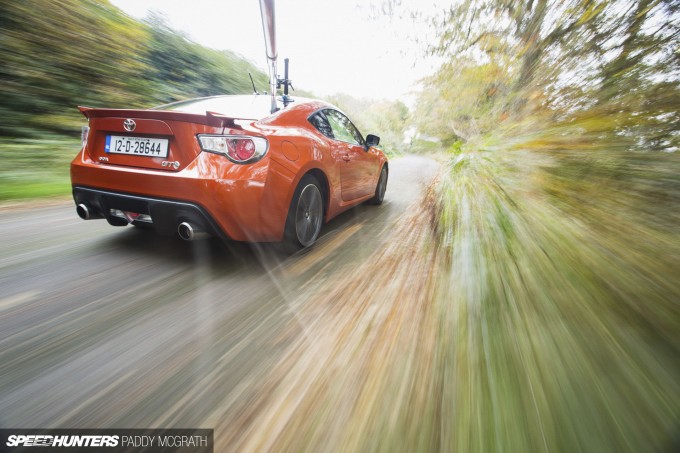 Shooting in sunlight can often have its own issues too. It was easy to set up on a warm sunny day, confident that there’s one less thing to worry about. Where there’s bright sunlight however, there are also dark shadows. I was pretty lucky on this occasion as only the cars that overshot the corner fell into the shade, but it was another lesson learned.