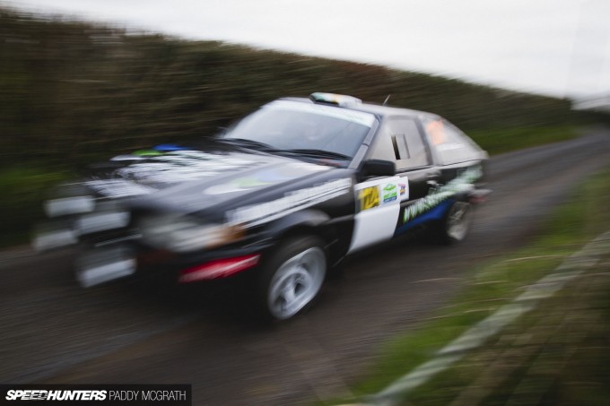 As the old saying goes: bad things happen in threes. This was shot at the same event, and the only night stage I could attend. I waited for many hours in the cold (and I mean proper Irish cold) for the stage to start. As the first car came thundering towards me, I quickly came to the realisation that I was going to capture the grand total of nothing. I didn’t allow for the extra light pods used on the front of the cars for the night stages, so it was like shooting into the sun. Luckily, I did manage to get some shots of them going away from me, and some side shots with flash to fill the darkness.
