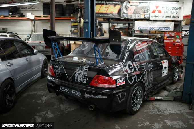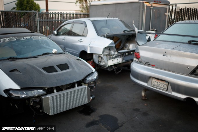 This Evo 8 belonged to a customer who wrecked the entire passenger side of the car. At least it made for a nice wall decoration.