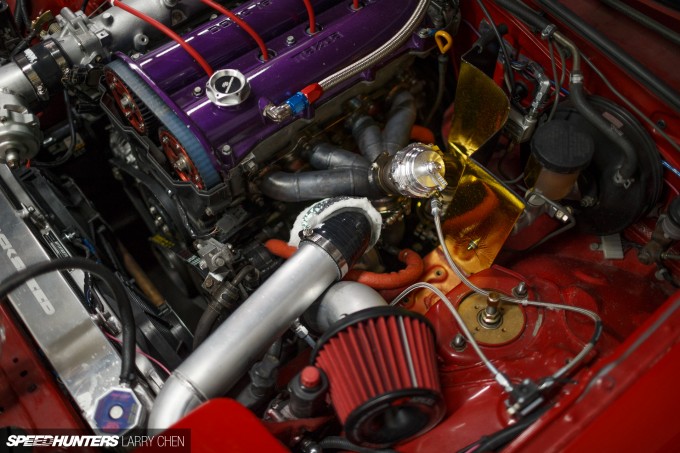 It’s a 1.8 liter built by Millennium Motorsports, with forged internals and some head work done. Almost ten pounds of material was shaved from the crank.