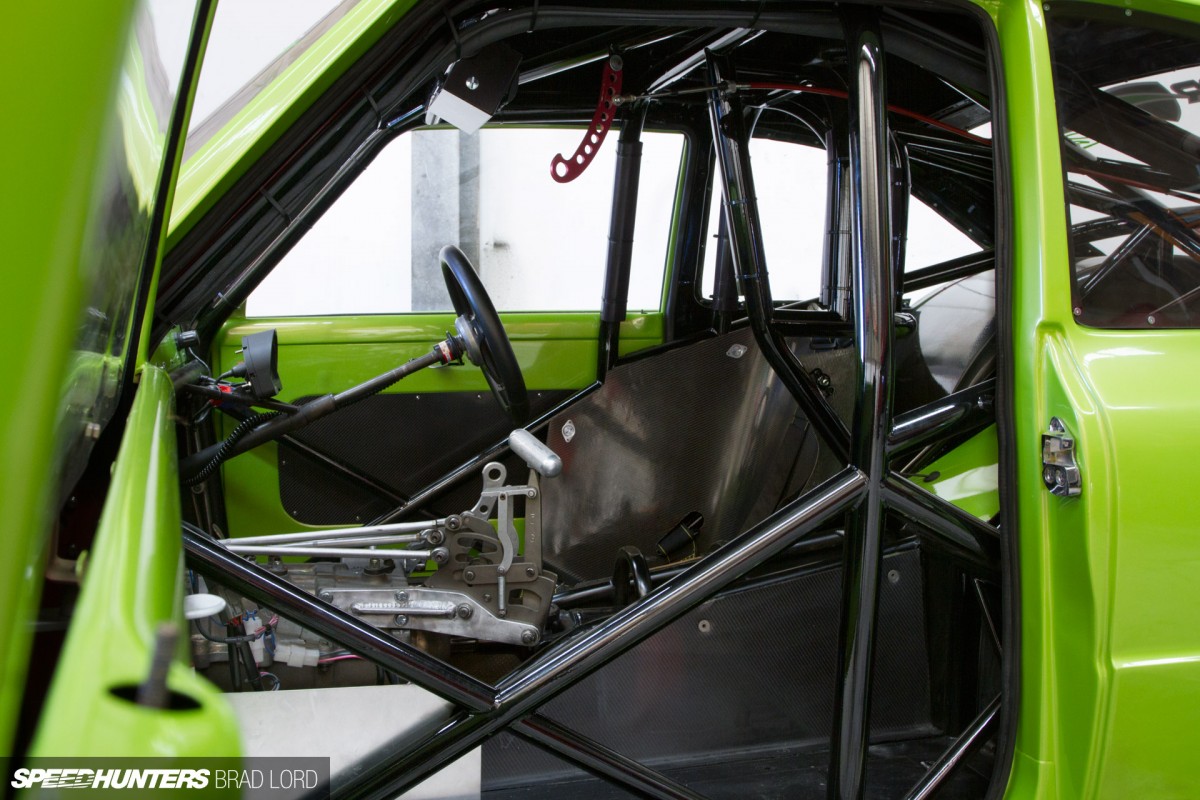 I talked a little bit earlier about how nicely this car has been put together, and there’s no place more evident of that fact than inside. Enveloped within the full tube chassis and integrated ANDRA-spec roll cage is a carbon fibre tub that not only serves the purpose of being incredibly light and strong, but with a high-gloss clear-coat finish, it looks amazing against the lime.
