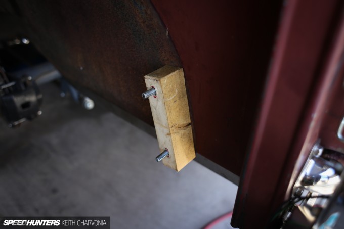 We pulled the driver’s fender off and chucked the wood blocks.