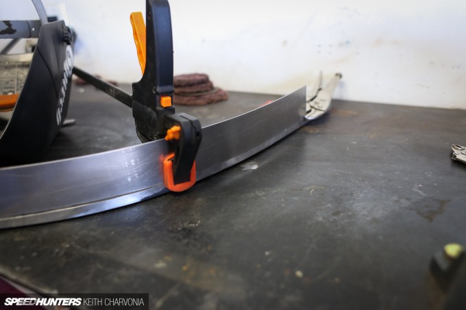 Like so many things, the success of the project hinges on the level of prep you do before getting down to the actual work. Finally, we were able to start clamping up the metal to widen the fenders.