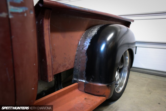 The first time I met Joe, I noticed something funny about the rear fenders on his pickup. Since he can’t weld, he spaced them out with chunks of wood until he could find someone to widen them for him. I think it’s time we fix that.