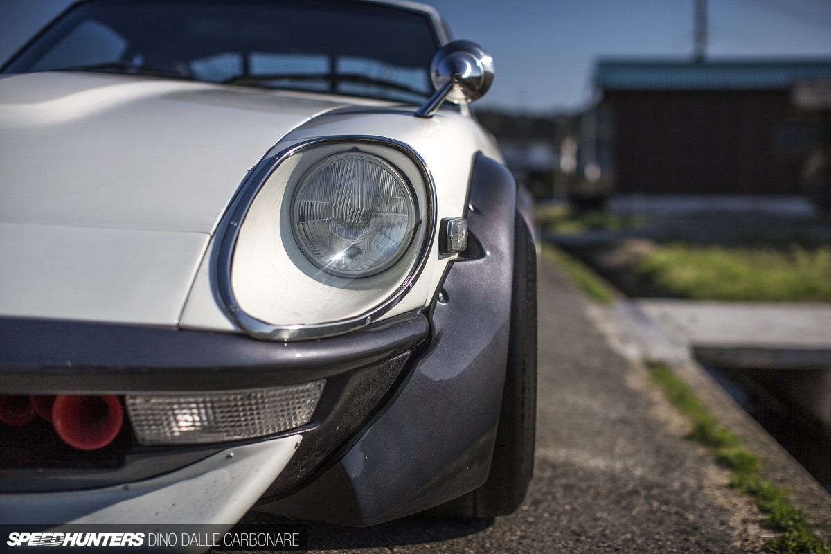 Shakotan is a term you should all be familiar with if you visit Speedhunters on a regular basis. It literally means lowered body height and is used to describe any car that has been visibly and aggressively lowered. However, it’s become quite the coined word to use when referring to older cars – kyusha – and most notably when those older rides have had Works-style fenders added on. And that’s precisely what Kazuno Oda at Hello Special did with his Fairlady Z.