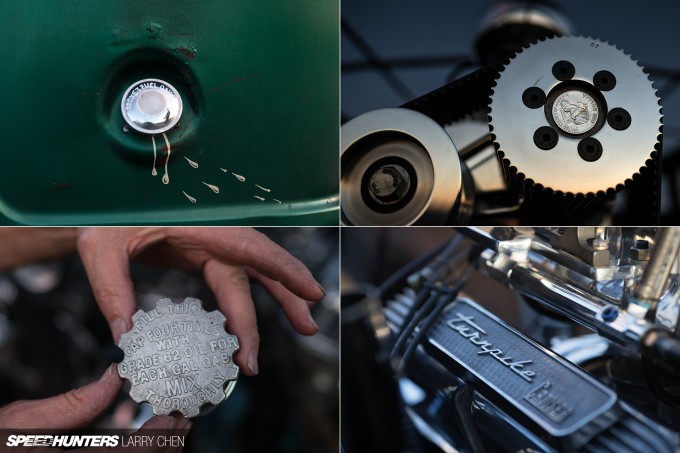 Along with the more obvious modifications, there are plenty of other cool little rat rod details spread around the van. Things like the Turnpike Cruiser valve covers, and the breather cap – which was sourced from a B17 bomber auxiliary power unit.