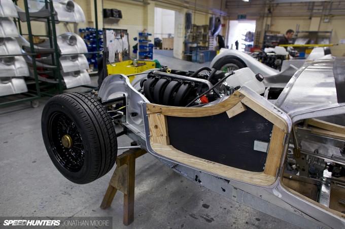 This was the part that particularly amazed me. Prior to my visit, I only thought that the old cars used wood, but the aluminium-chassis cars and even the 3 Wheeler also use structural wooden parts. On the former, wood is used in a sandwich between the chassis and outer skin to strengthen and increase the life of the body, and for the latter ash is used to create the boat-like structure over which the aluminium 3 Wheeler body is draped.