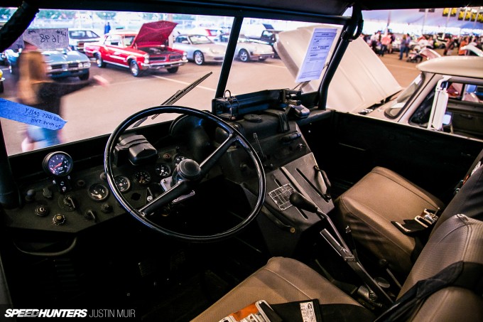 The tall zombie shifter was a bit gaudy for my tastes, but I could change that once it was mine anyways. The rest of the interior consisted of riveted aluminum seats and a Pontiac gauge cluster.