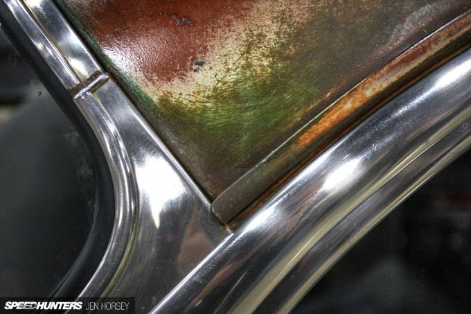And then I started to wonder to myself: just how many of these textured fighters were indeed real? I have heard of some fiberglass hot rods weathered with faux patinas. Were some of these apparent warriors manufactured and styled to look this way?