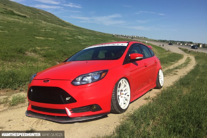 Mario from Alberta has shared with us his 2013 Ford Focus ST, which serves as his trusty daily driver – snow or shine. Mario and a few friends installed his Air Ride suspension system last year, and he’s been loving it ever since. He writes, “Prior to this, I’d never been in a vehicle with air suspension so I had no expectations. Of course, I’d read things about it being ‘soft and floaty’ and that it wouldn’t hold around corners at all. Which was funny, because when I first took it for a rip on some twisty roads it was the complete opposite! My first thought was that it handled just like my old S2000 on Buddy Club coilovers. It was stiff and firm – but not quite to the bone-jarring extent of track setup coilovers.”