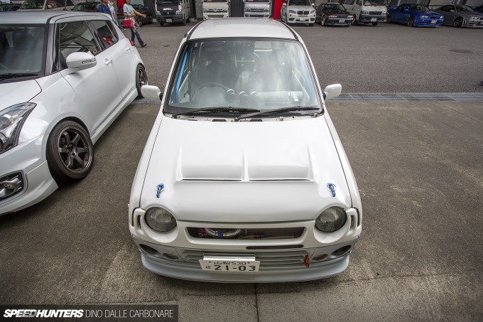 It’s probably going to surprise you, but my final spotlight from the recent R’s Meeting at Fuji Speedway isn’t even a GT-R. As crazy as that may sound, when I stumble upon cars like this Suzuki Alto Works in a parking lot, I owe it to you guys to share it. Because this is as Japanese as a tuned car can possibly get!