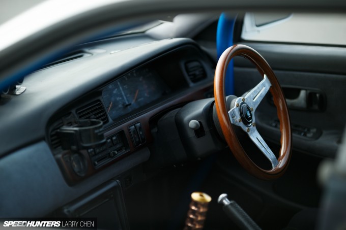 The transmission is an RB25DET 5-speed with a Nismo single-plate clutch, and it sends the turbocharged power to a Cusco 2-way LSD equipped rear end.