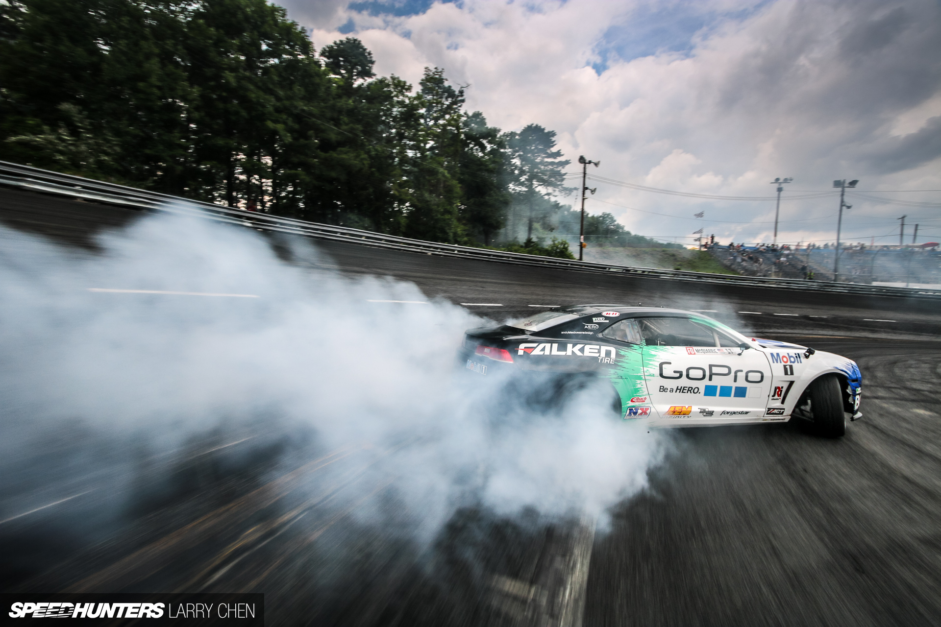 One of my favorite things when shooting professional drifters is when they lock up their front wheels while left-foot braking. It’s just so cool to see tire smoke coming from both the front and rear tires.