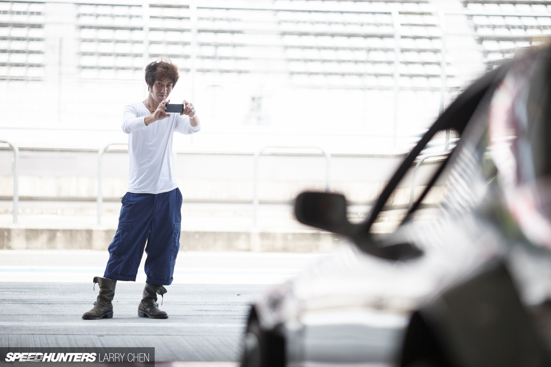 The garages at Fuji Speedway were a pleasure to shoot in as they all acted as giant soft-boxes. Plus, all the scenes had a heavenly look to them due to how much light was pouring in from outside.