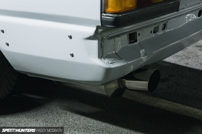The bumper-less rear wasn’t a purpose-made decision, rather it has just proved very difficult to source a rear bumper. Luckily for Bryan, the bumper-less look is quite strong at the minute and it adds a little bit of aggression to the overall look of the car.