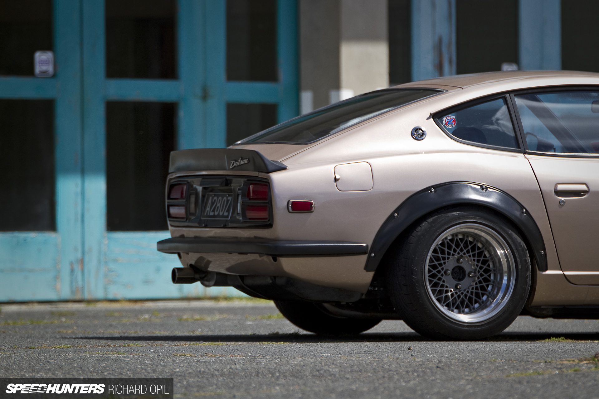 Will an S30 sitting on RS Watanabe 8-spoke wheels ever go out of style? Probably not, hence the choice of the 16×8.5-inch front, and 16×9.5-inch rear examples all tucked neatly beneath a set of satin gunmetal 240ZG fibreglass flares.