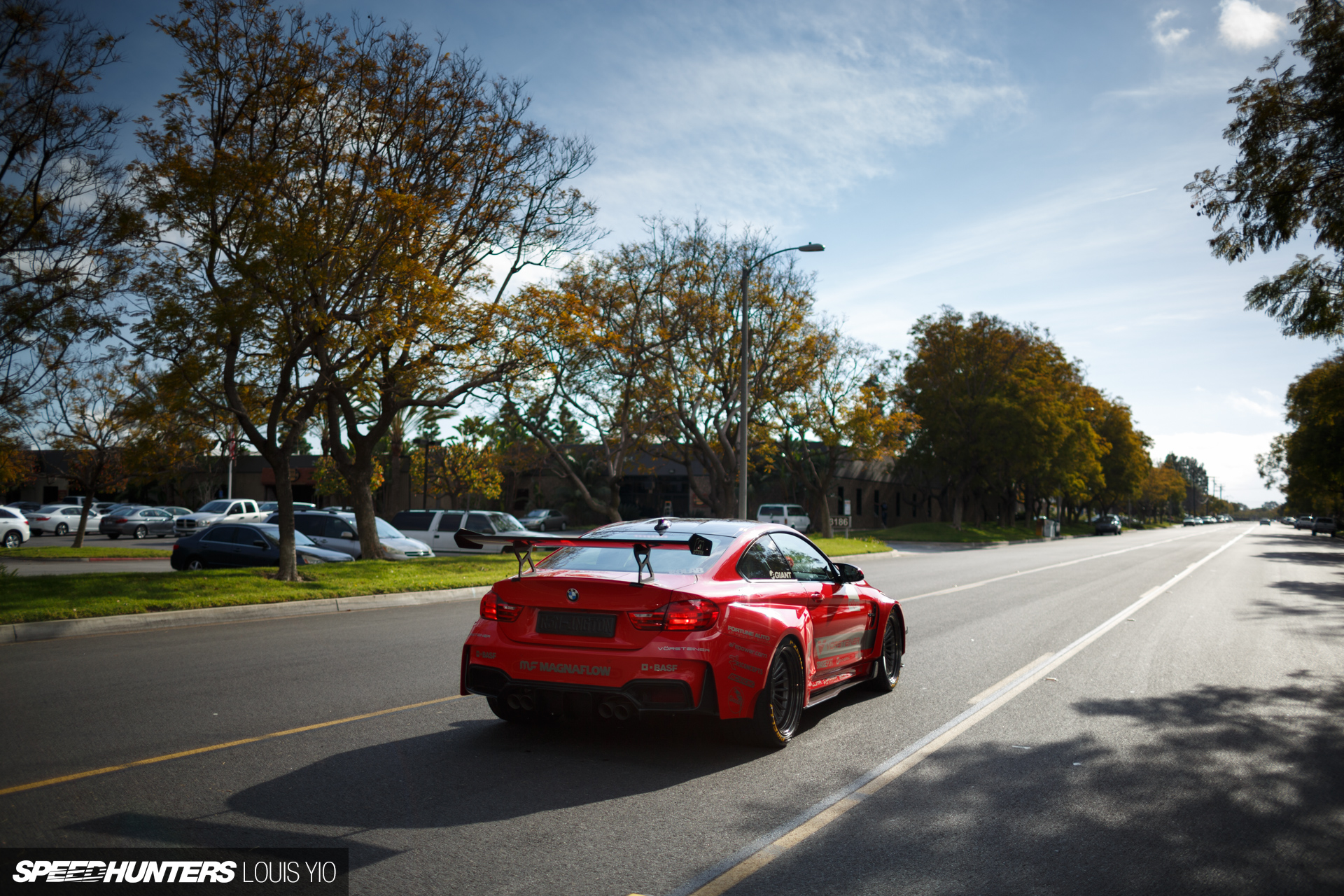 And along with the aggressive fenders, bumpers and side skirts, there’s also a big front splitter and a GT wing out back to complete the race-inspired look. To finish things off, the BMW was coated in bright red BASF paint.