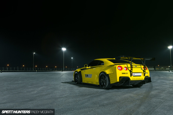 Once in Japan, JUN set about stripping the car back to bare metal and rebuilding the stock GT-R from scratch. From a bare shell, a cage was installed, a BenSopra bodykit fitted and the car painted JUN’s trademark shade of yellow. The engine is a 4.1-litre stroker with JUN internals and twin GTX3582s; the aim being a responsive engine for track use rather than outright power figures. Still, once tuned by Al Anabi Racing it made 1,000hp on what they describe as a “conservative” track tune.