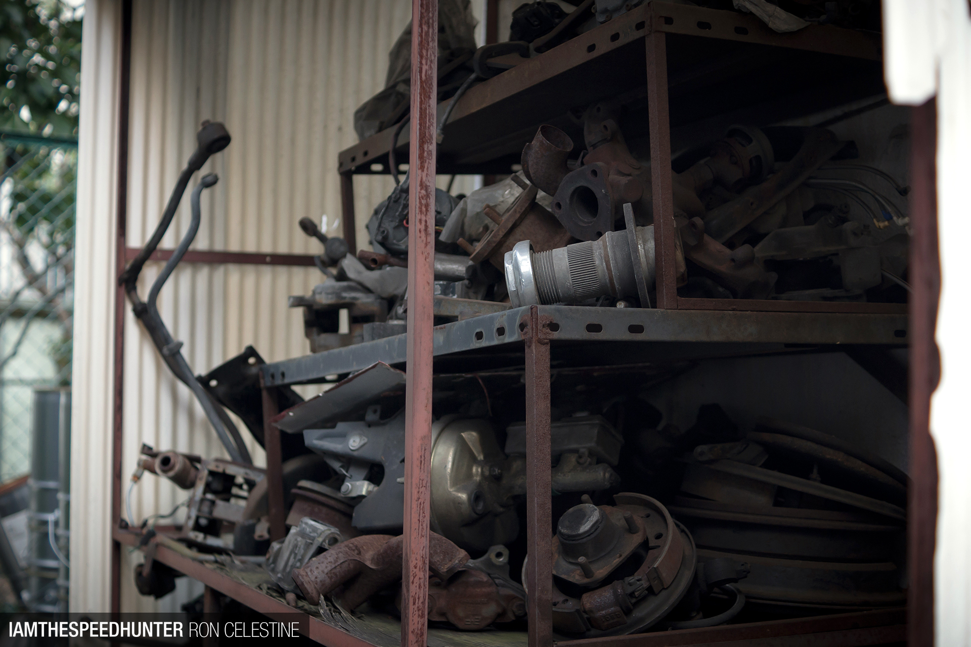Parts are scattered around both inside and outside of the shop due to the limited space.
