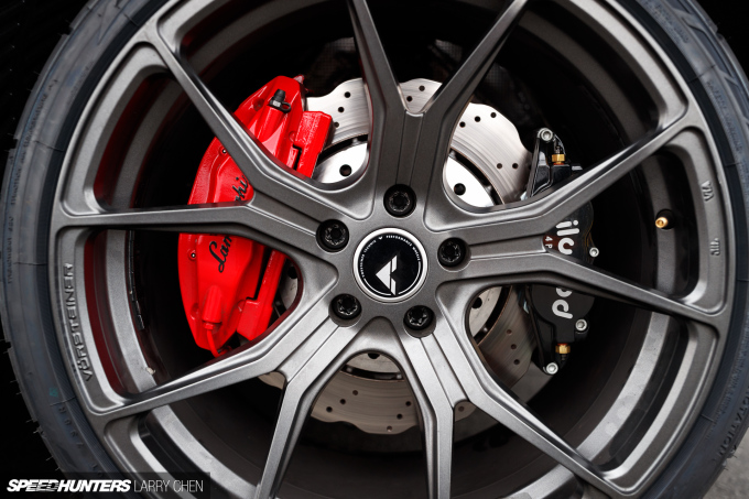 Because this model Huracán came in rear-wheel drive, it’s the perfect start point for supercar drifter. Wilwood supplied the extra 4-piston rear calipers, and the wheels are made by Vorsteiner, who also supplied the body kit.